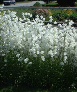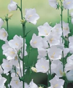 The 500 White Peach-Leaved Bellflower, scientifically known as Campanula Persicifolia, is an exquisite plant that produces stunning white flowers measuring 2 inches across. Ideal for gardens, these bellflowers not only beautify your landscape but also attract beneficial pollinators like bees and butterflies.