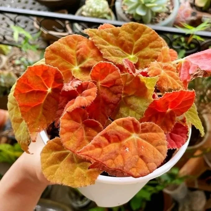 The Amber Begonia Red Orange, also known as Autumn Embers, is a stunning addition to any garden or indoor space. This live starter plant, standing at 4-6 inches tall, boasts vibrant red-orange foliage that brings warmth and beauty to your surroundings. Its compact size makes it ideal for containers, hanging baskets, or as a colorful ground cover in garden beds. Enjoy the beauty and ease of growing this exceptional begonia.