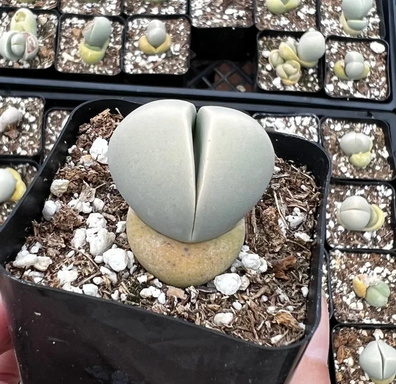Argyroderma Testiculare, a fascinating hybrid succulent of Lithops and Conophytum, is a must-have for all plant enthusiasts. Available in a convenient 2-inch pot, this unique plant boasts a pebble-like appearance that stands out in any collection.
