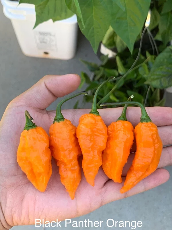 - How hot are Black Panther Orange Peppers? These peppers are superhot, similar in heat level to Bhut Jolokia.