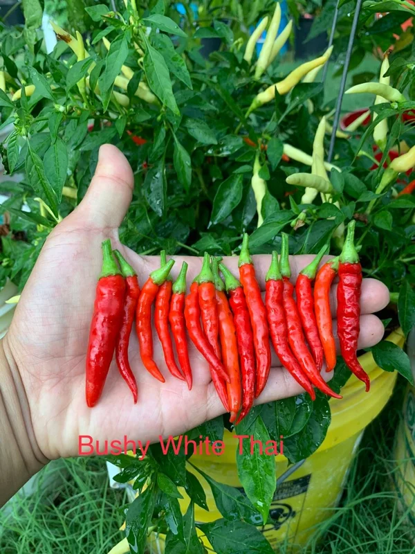 The Bushy White Thai Pepper Seeds are perfect for gardeners looking for a compact and productive pepper plant. These plants typically grow to about one foot tall, making them ideal for small gardens or container gardening. The peppers themselves are a visual delight, starting as white, gradually turning to orange, and finally ripening to a vibrant red. This color transformation adds beauty and interest to your garden.