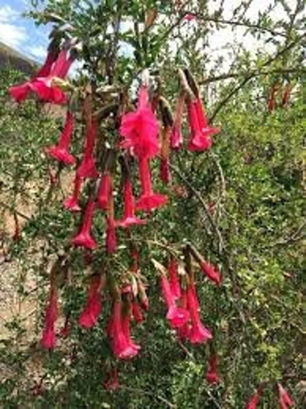 Cantua buxifolia ‘Hot Pants’, known as the Sacred Flower of the Andes, is a stunning flowering shrub that showcases vibrant bi-colored blooms. The flowers, with striking orange tubes that transition into magenta skirts, create a captivating display as they dangle from the tips of the stems.