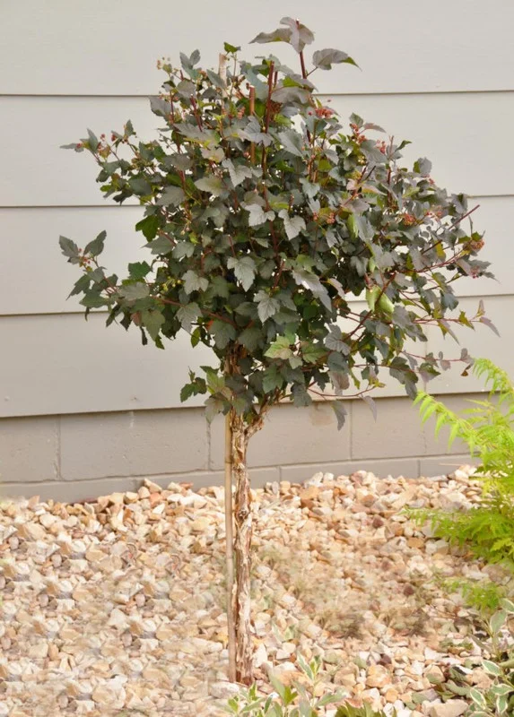The Crimson Diablo Ninebark not only enhances the aesthetic appeal of your garden but also contributes to a healthier environment. Its dense foliage provides shelter for birds and other wildlife, while its flowers attract pollinators such as bees and butterflies. By planting this shrub, you’re creating a more diverse and thriving ecosystem in your backyard. Consider adding this versatile and beautiful shrub to your garden today, and enjoy its many benefits for years to come. The shrub is excellent for tree forming as well.