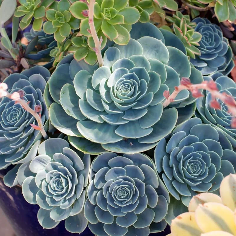 - Versatile Decor: The compact size and appealing shape of the blue echeveria plant make it perfect for various settings. Use it in terrariums, rock gardens, fairy gardens, or as a standalone potted specimen on a desk or shelf, enhancing any space with its charm.