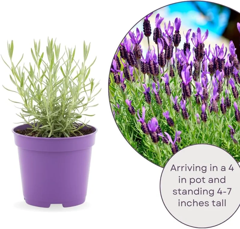 Transform your garden or indoor space with a beautiful French Lavender live plant, a beloved perennial herb known for its captivating fragrance and vibrant purple flowers. This particular variety is cherished for its delightful aroma and ability to thrive in various conditions, making it an excellent choice for both experienced gardeners and beginners. Originating from the Mediterranean, lavender (Lavandula stoechas) has been cultivated for centuries for its ornamental beauty, aromatic properties, and medicinal uses. Our live plants arrive ready to be planted, providing an instant touch of elegance and a calming atmosphere to any environment. Whether you’re creating a fragrant herb garden, adding a splash of color to your patio, or enjoying its scent indoors, this French Lavender live plant is a versatile and rewarding addition that promises year-round appeal.