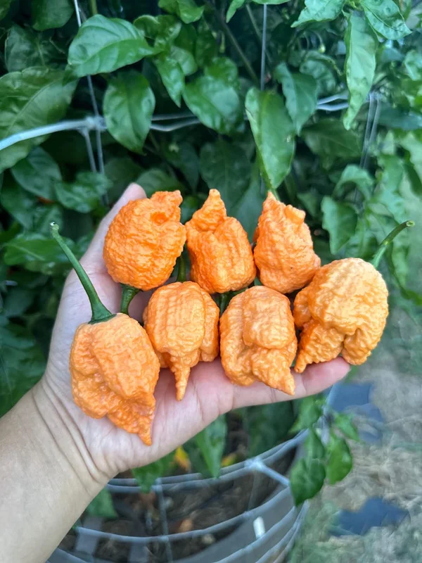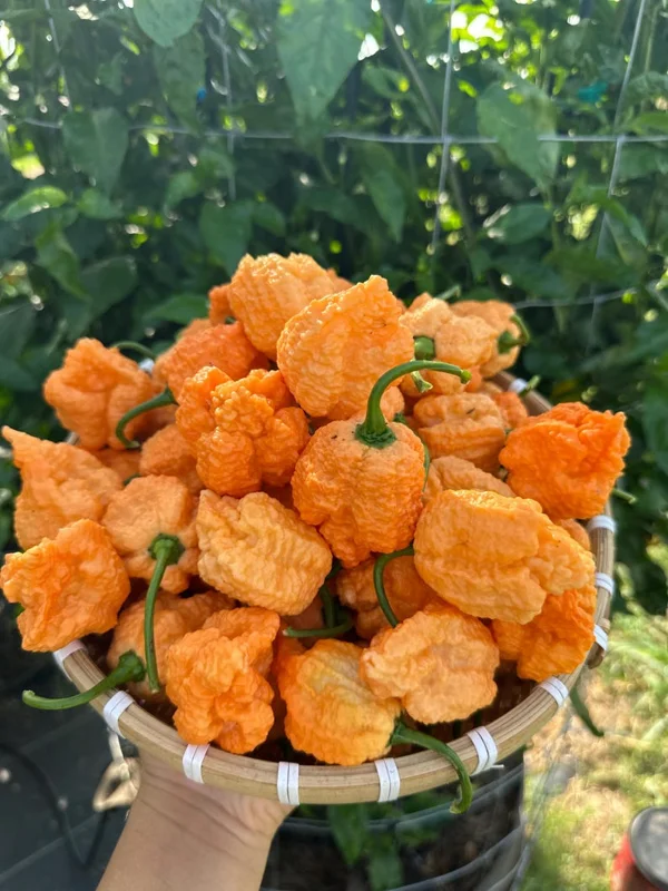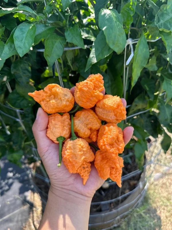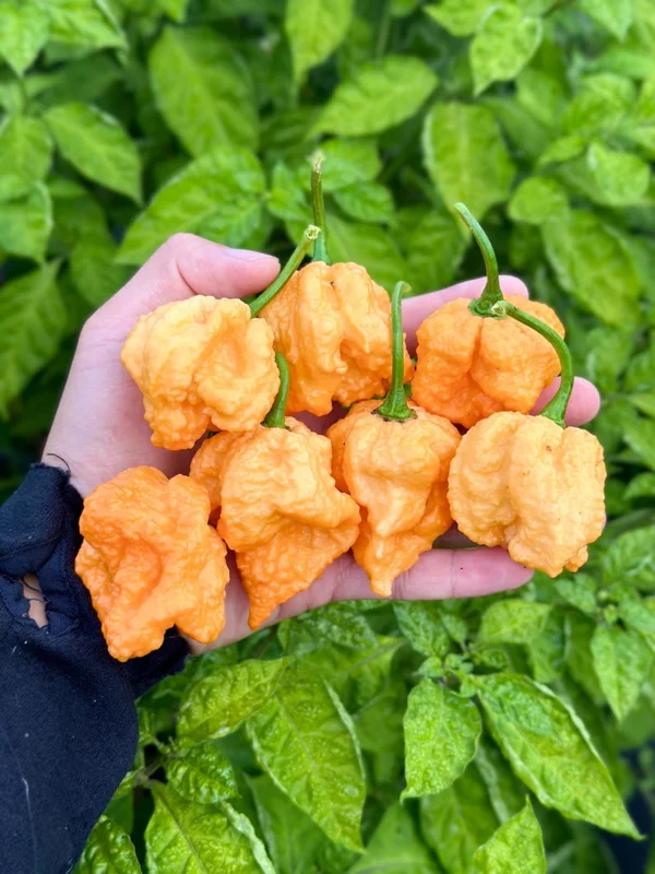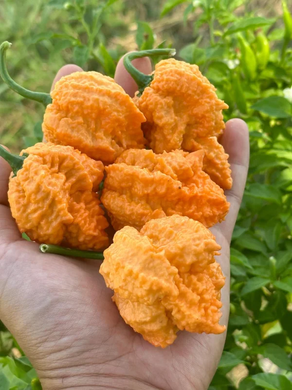 These plants are vigorous growers, ensuring a heavy yield of these distinctive peppers. The pods transition from green to a vibrant orange as they mature, developing their signature folds and textures along the way. This pepper is perfect for those seeking something out of the ordinary, both in terms of appearance and flavor.
