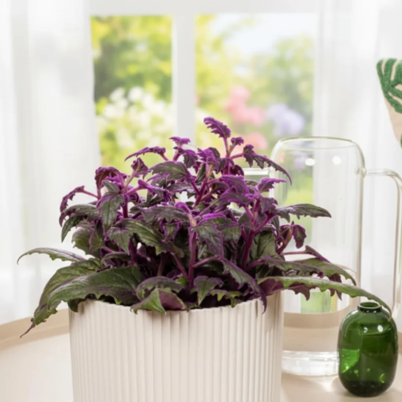 - Stunning Visual Appeal: The most striking feature is its vibrant, iridescent indoor purple foliage, which is covered in soft, velvety hairs. This rich color and texture add a luxurious and exotic touch to any indoor space, making it a focal point.