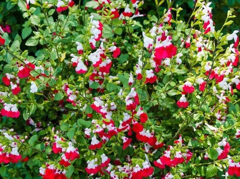 When it comes to soil, the Hot Lips Salvia live plant thrives in well-draining soil. Sandy or loamy soil types are preferred, as they prevent waterlogging, which can be detrimental to the plant’s health. Moderate watering is recommended; allow the top inch or two of soil to dry out between waterings. Overwatering is a common pitfall, so always check the soil moisture before adding more water. Fertilize sparingly; a balanced, slow-release fertilizer in spring is usually sufficient. Pruning after the first flush of blooms can encourage reblooming and maintain a tidy shape. In winter, this bicolor salvia plant may shed its leaves, which is a natural part of its dormancy cycle. Regular deadheading of spent flowers will also promote continuous blooming throughout the season. Keep an eye out for common pests like aphids, though they are generally not a major issue for this robust plant.