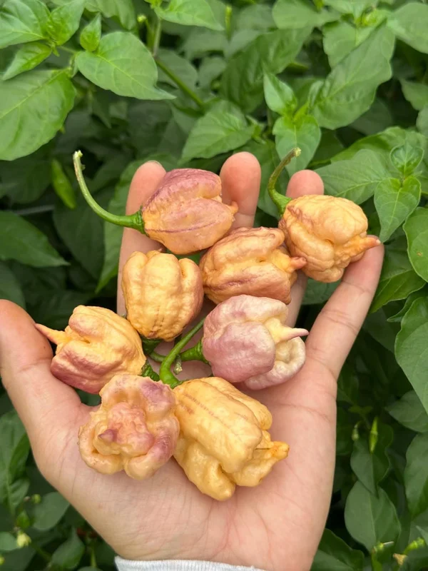 Imagine harvesting peppers that transition from beige/white to subtle pink and purple hues. These peppers are not only visually stunning but also offer a complex flavor profile. You’ll experience initial fruity and floral notes, followed by a citrus-like brightness, before the intense heat kicks in. Expect a fiery, lingering burn that will satisfy any chilihead.