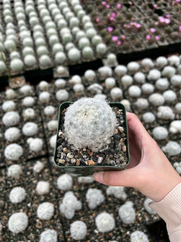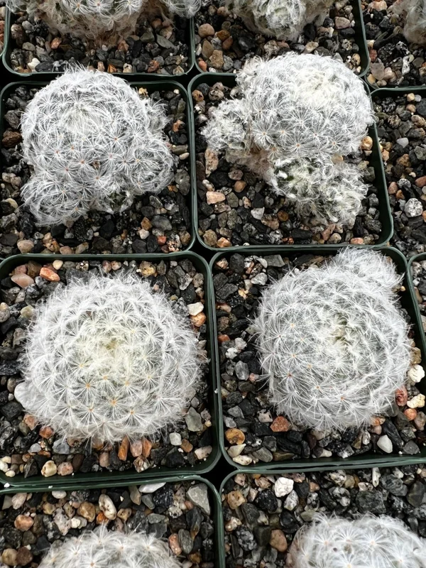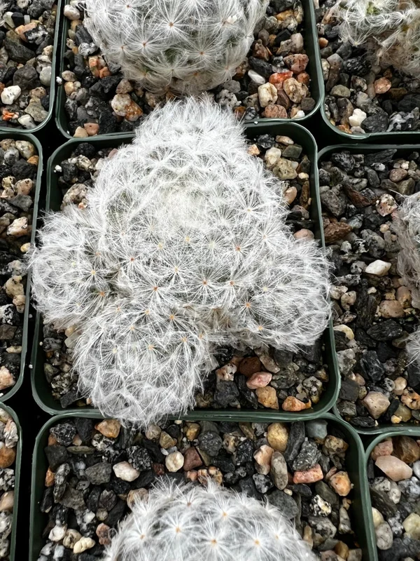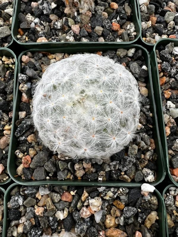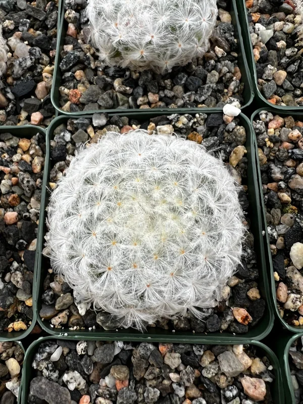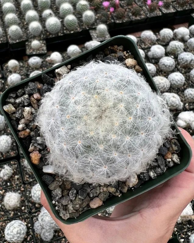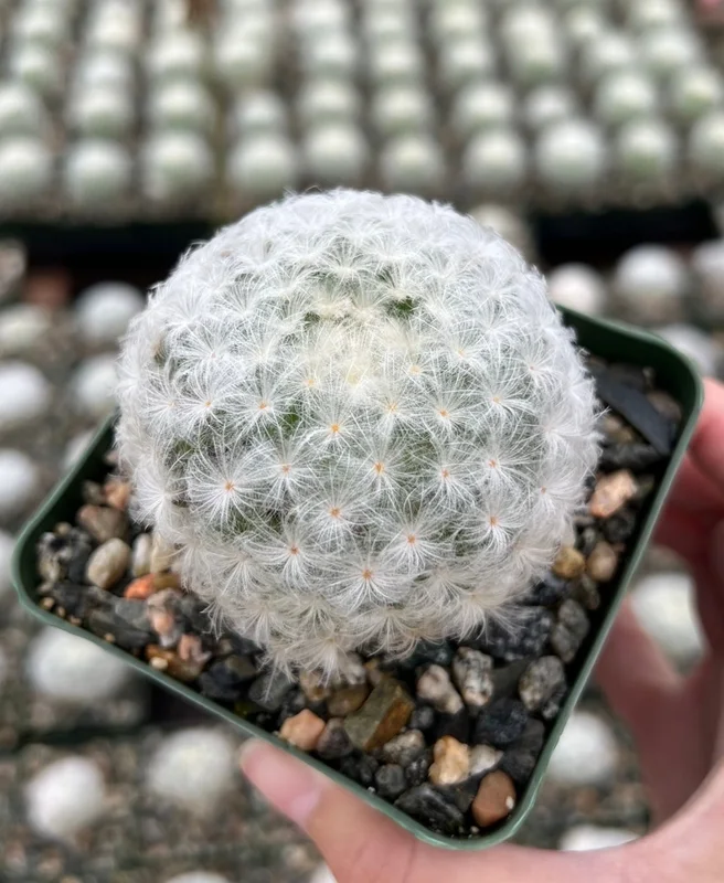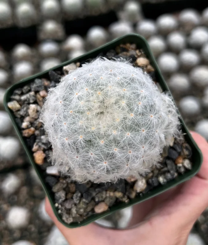 - What are the dimensions of the Mammillaria Plumosa? The plant comes in a 3.5-inch pot.