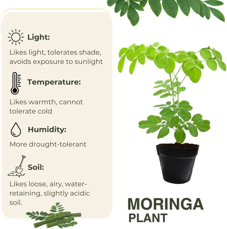 - Q: How much sunlight does it need? A: This drumstick tree requires full sun exposure, meaning at least 6-8 hours of direct sunlight daily for optimal growth and health. Ensure it is placed in the sunniest part of your garden or patio to maximize its potential.