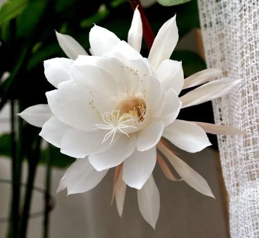Experience the magic of the Night Blooming Cereus live plant, a truly spectacular addition to any plant collection. Also known as the Queen of the Night plant care, this tropical cactus (scientifically known as Epiphyllum oxypetalum) is celebrated for its breathtakingly beautiful, large white flowers. These exquisite blooms unfurl only at night, releasing a strong, sweet fragrance that fills the evening air, making it a highly prized and dramatic specimen. Each flower is a fleeting masterpiece, typically lasting just one night, adding to its allure and mystique. The plant features long, flat, trailing or climbing stems, making it versatile for various displays. Whether you’re looking for a unique indoor houseplant or an eye-catching outdoor container specimen, the night blooming cactus offers an unforgettable experience for plant enthusiasts.