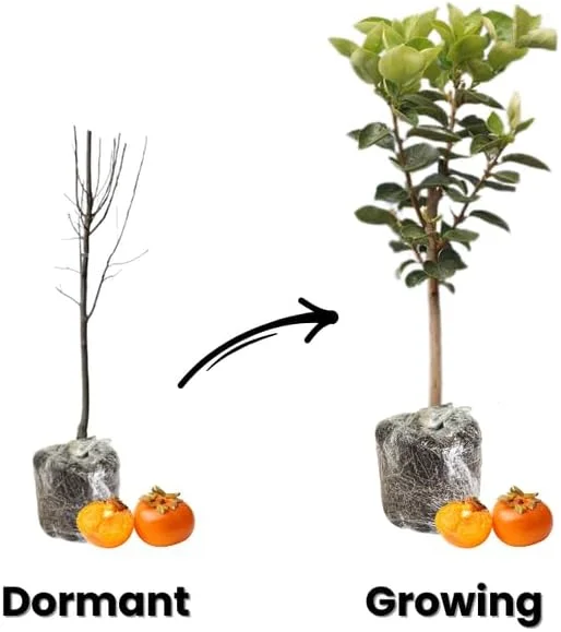 - Q: What condition will the persimmon tree live plant arrive in? A: Your tree will arrive in a winter dormant state, meaning it will appear as a well-rooted stick with no leaves. This is completely normal and healthy for deciduous trees and is the best condition for successful transplanting.