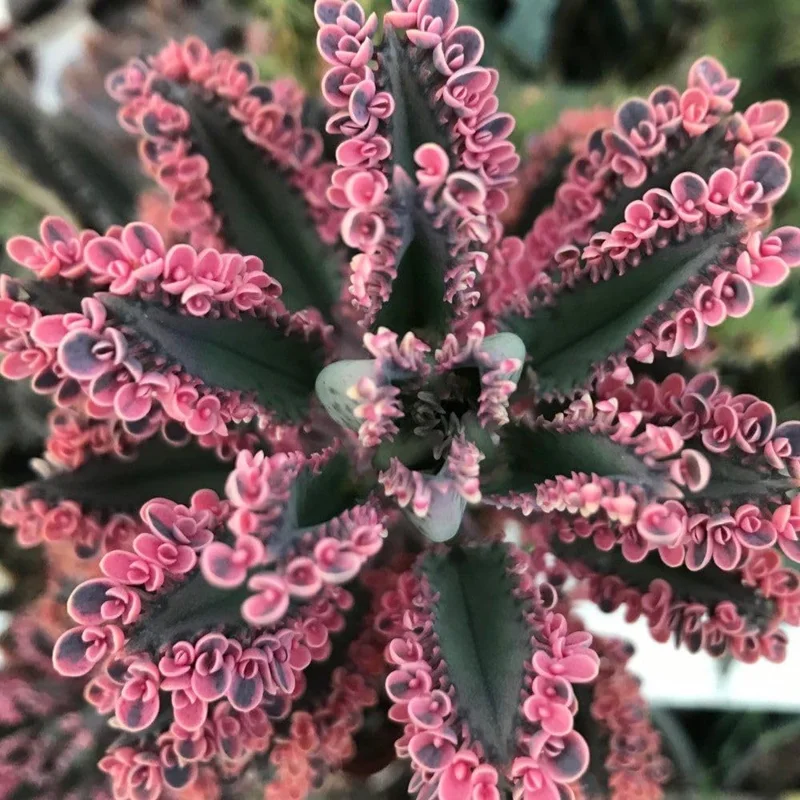 Introduce a splash of vibrant color and fascinating form to your indoor garden with the stunning pink kalanchoe live plant. Also widely known as the mother of thousands succulent, this charming botanical specimen (Kalanchoe daigremontiana) is celebrated for its distinctive pink-tinged foliage and prolific production of tiny plantlets along its leaf margins. These plantlets give it the endearing “Mother of Thousands” moniker, as they readily drop and root, creating new plants with ease. A popular choice for both seasoned plant enthusiasts and beginners, the Kalanchoe is a resilient and low-maintenance succulent that adds a unique aesthetic to any collection. Its compact size and striking appearance make it an ideal desk plant, windowsill accent, or a thoughtful gift for plant lovers.