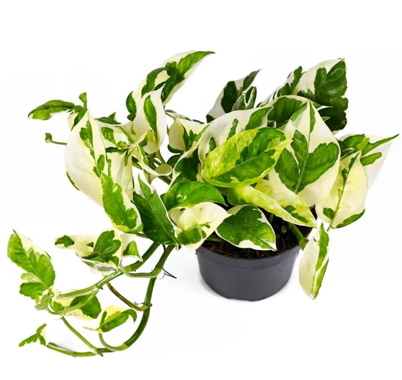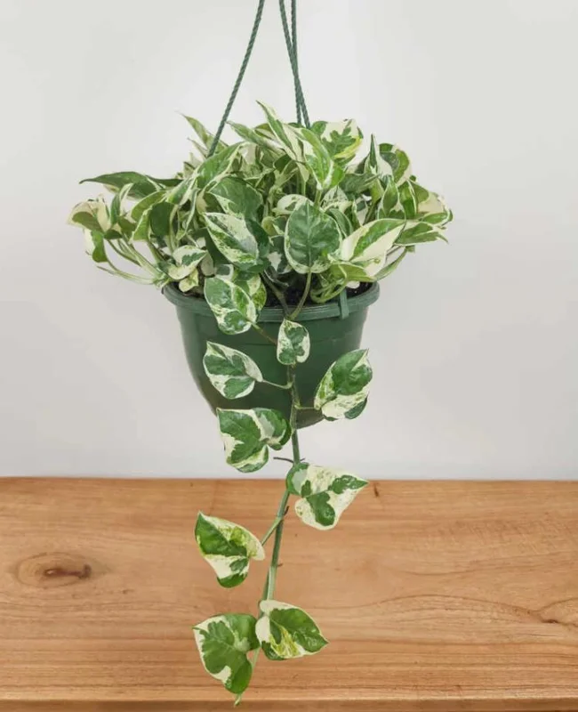 Elevate your indoor greenery collection with the exquisite Pothos N’Joy live plant. Renowned for its striking variegated foliage, this popular houseplant displays a beautiful contrast of white and deep green leaves, adding a touch of sophistication to any room. Unlike some of its larger Pothos relatives, the Pothos N’Joy live plant exhibits a compact and controlled growth habit, making it an ideal choice for smaller spaces, desks, shelves, and hanging displays. Its trailing vines can gracefully cascade, creating a lush, vibrant focal point. This particular variety is celebrated for being an easy beginner houseplant, requiring minimal specialized care while offering maximum visual impact.