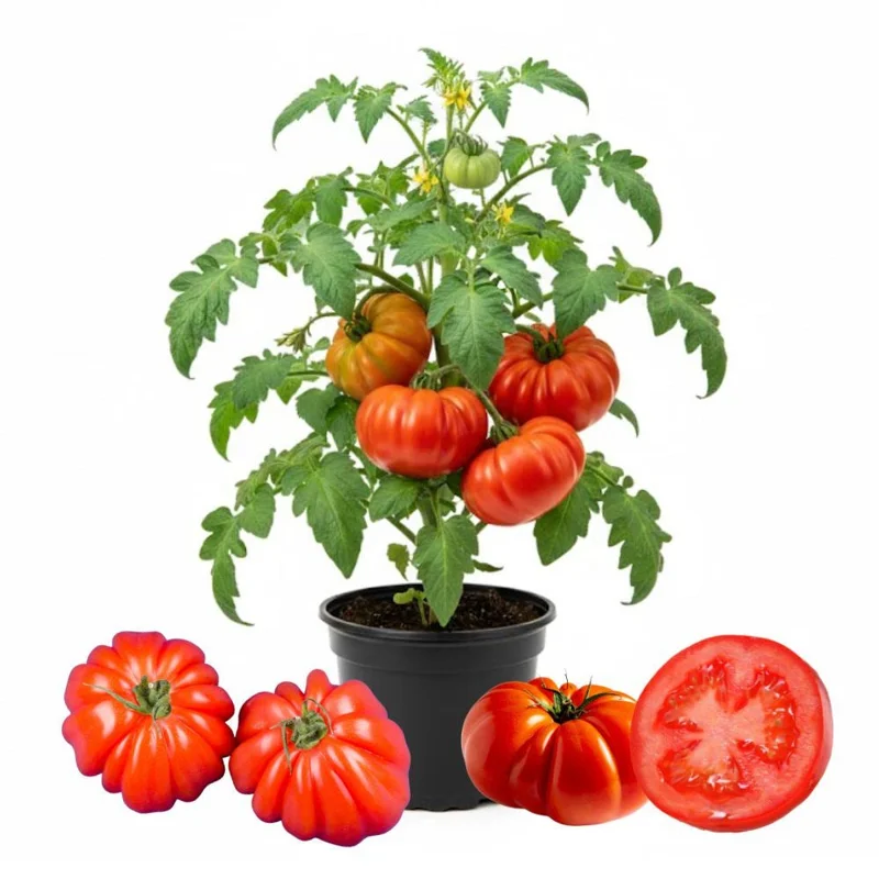 Tomato Beefsteak is a popular variety of tomato known for its large, meaty fruit with a rich, juicy flavor. It is perfect for home gardens, providing delicious tomatoes that can be used in a variety of dishes, from sandwiches to salads. This plant thrives in sunny conditions and well-draining soil, making it an ideal choice for gardeners looking to grow their own fresh produce.