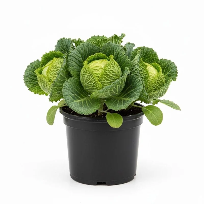 Cabbage is a vegetable known for its dense, tightly packed heads of crisp leaves. It is commonly used in various dishes like salads, soups, and stews. Cabbage grows well in cool temperatures and is suitable for home gardens or containers, making it an ideal choice for growing your own produce.