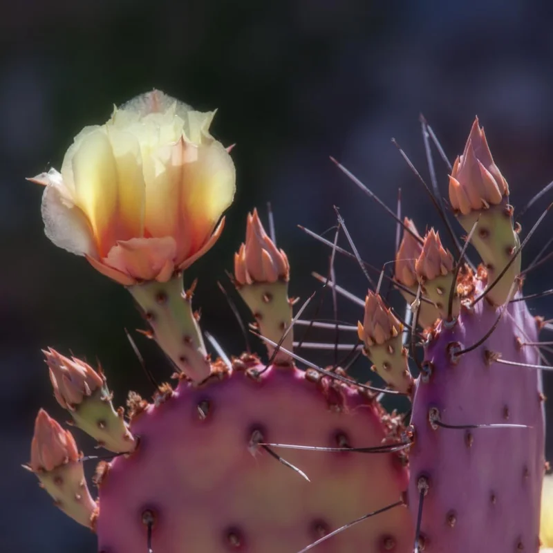 - Vibrant Color Transformation: The pads of this purple prickly pear cactus display stunning purple hues, especially when exposed to strong sunlight, providing a dynamic and eye-catching display that changes with the seasons. This makes it a visually dynamic addition to any space.