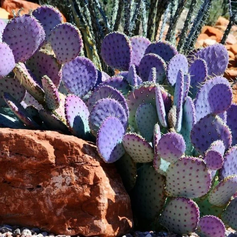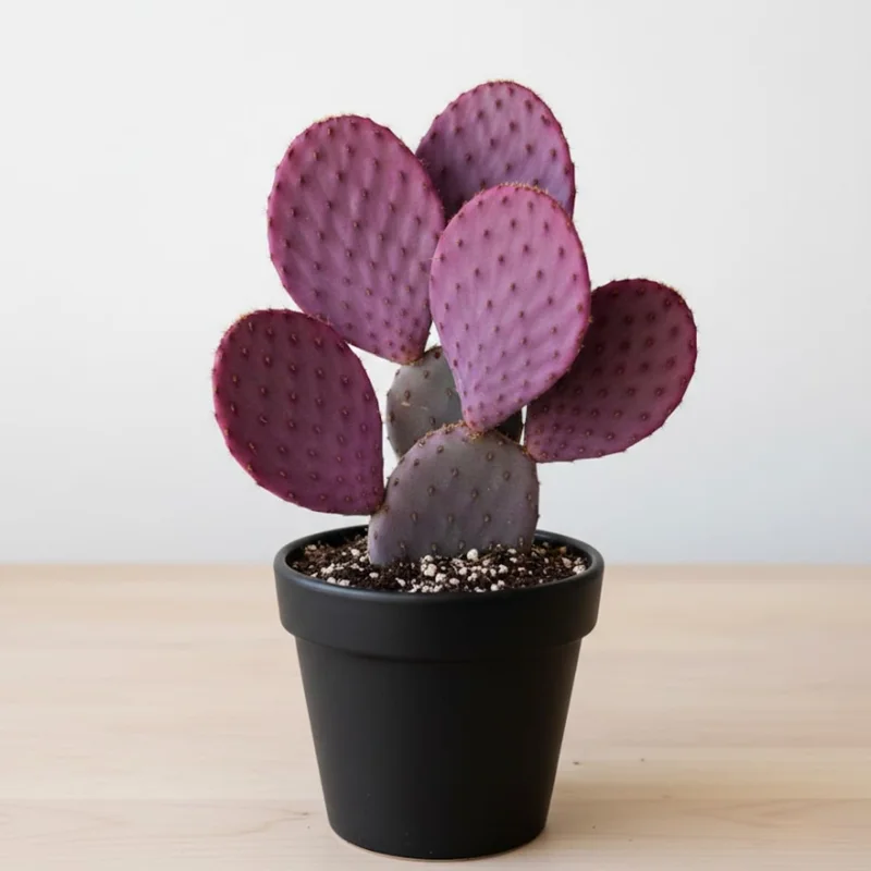 - Q: How much sunlight does it need? A: The purple prickly pear cactus live plant requires at least 6-8 hours of direct full sun daily to maintain its vibrant purple coloration and healthy growth. Insufficient light will result in greener pads.