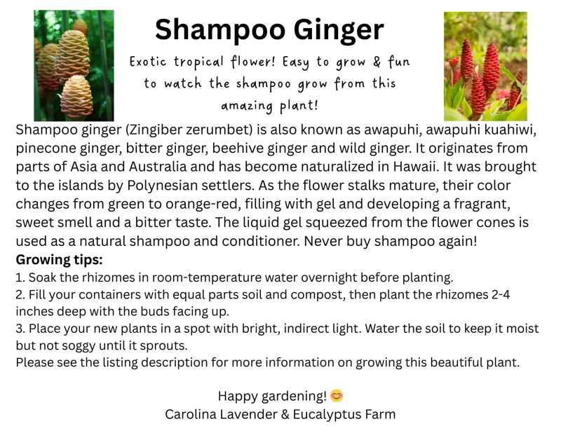 - Q: Is this plant easy to care for? A: Yes, once established, the shampoo ginger plant is relatively easy to care for. It requires consistent moisture, well-draining soil, and appropriate sunlight. Following our care tips will help ensure its success.