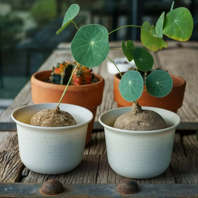 - Unique Aesthetic Appeal: The most striking feature of this plant is its prominent, sculptural caudex, which provides a unique, artistic element to any room. Its compact size makes it perfect for displaying on windowsills, desks, or shelves, adding a touch of natural artistry. This characteristic makes it a highly sought-after stephania caudex succulent.