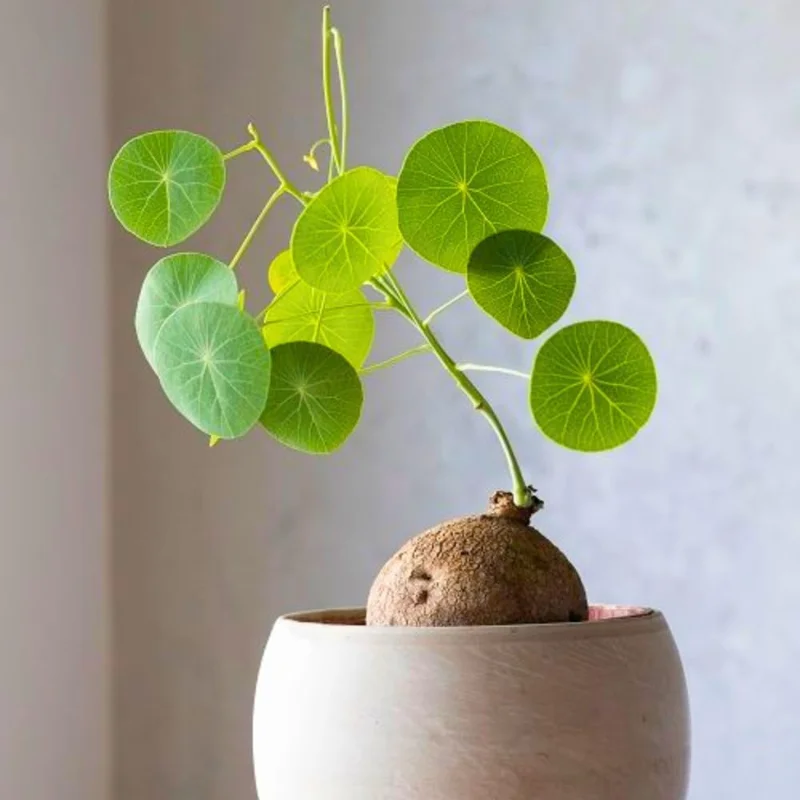 Introduce a touch of exotic elegance to your home with the fascinating 3-3.5” stephania cephalantha live plant. This captivating live plant is a true botanical marvel, renowned for its unique caudex – a swollen stem base that stores water, giving it a distinctive, sculptural appearance. From this intriguing bulb emerges delicate, round, heart-shaped leaves, creating an aesthetic that is both rare and beautiful. Often referred to as a rare caudex succulent, the Stephania Cephalantha is a conversation starter, perfect for plant enthusiasts seeking something out of the ordinary. Its unusual growth habit and charming foliage make it a prized addition to any indoor plant collection, offering a blend of natural beauty and artistic form.