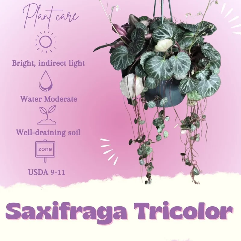 - Q: Is this an indoor or outdoor plant? A: This versatile saxifraga tricolor plant can be grown both indoors and outdoors. It thrives indoors as a houseplant and can be grown outdoors in shaded garden areas in USDA zones 9-11.