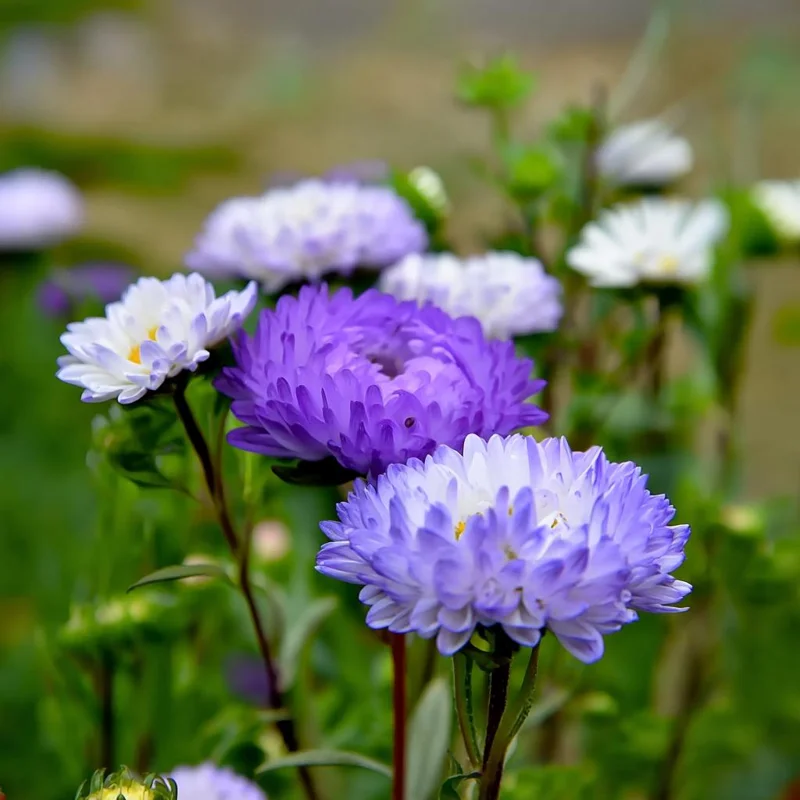 - Elegant Aesthetics: Produce stunning peony-type flowers in frosted white with delicate lavender tints, adding a sophisticated and romantic touch to any garden design. The frosted white aster blooms create a serene and inviting atmosphere.