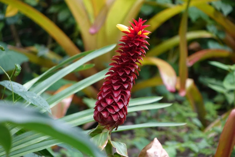 Enhance your garden with the vibrant colors of Tropical Seeds Red Flowering Wax Ginger. This stunning heirloom variety produces eye-catching red flower heads with delicate yellow blooms, making it a standout choice for both indoor and outdoor gardening.