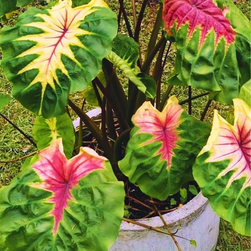 - Q: Can I keep the variegated colocasia elephant ears in a pot permanently? A: Absolutely! This plant thrives in containers, making it suitable for patios, balconies, or as an indoor specimen. Just ensure the pot has good drainage and is large enough to accommodate its root system as it grows.