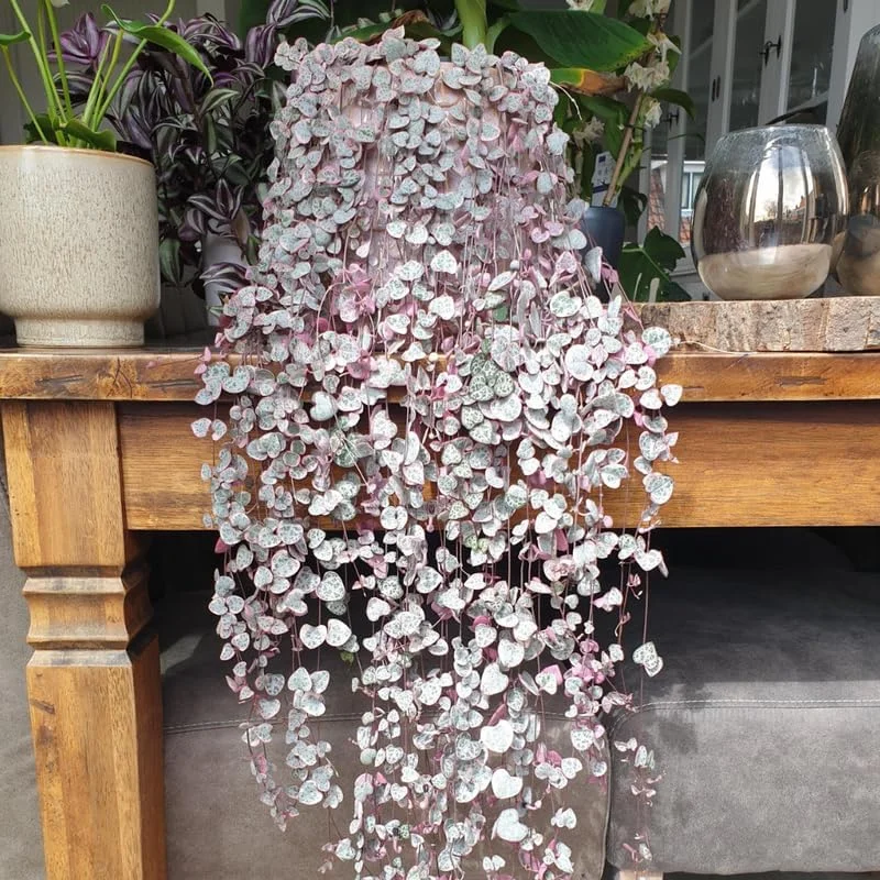 The variegated string of hearts live plant offers a multitude of benefits beyond its striking appearance, enhancing both your home decor and well-being. Its low-maintenance nature and unique growth habit make it a standout choice for any indoor plant collection. Here are some of the key advantages of cultivating this charming succulent: