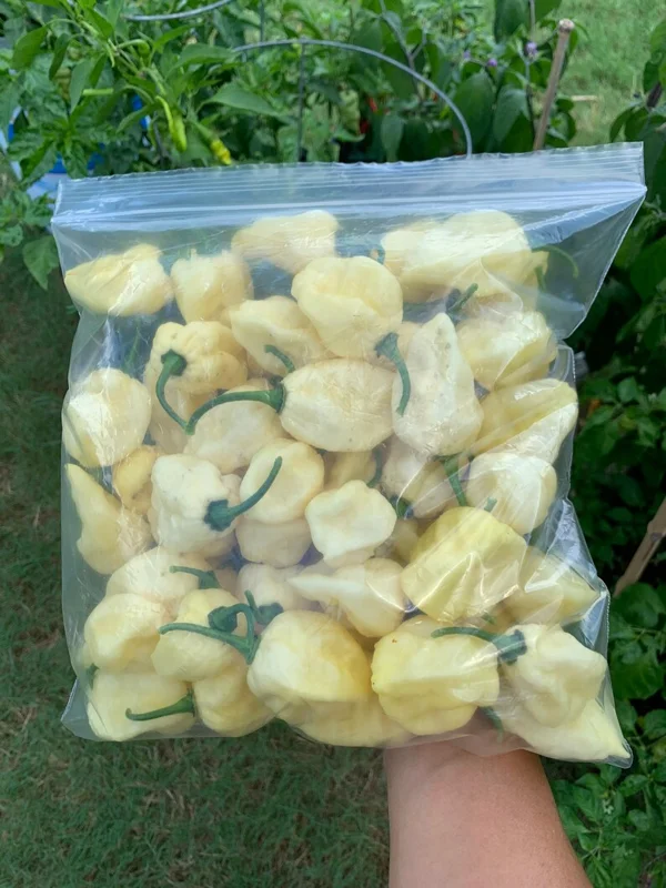 The White Moruga Pepper Seeds will allow you to grow a rare and visually stunning variety of the famous Trinidad Moruga Scorpion pepper. This pepper is not just about extreme heat; it offers a unique flavor profile that sets it apart. Instead of the typical red hues, the White Moruga ripens to a creamy off-white, almost ivory color, making it a striking addition to any garden or pepper collection. The pods are generally small to medium in size, with a wrinkled skin that hints at the intense heat within.